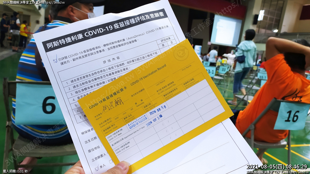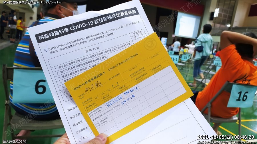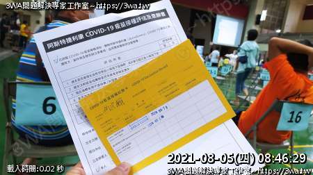 | 內容說明:2021.08.05打AZ疫苗 | 瀏覽人數: 1175 |