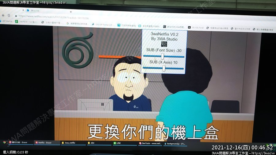 | 內容說明:2021.10.03netflix字幕加大 | 瀏覽人數: 1150 |
