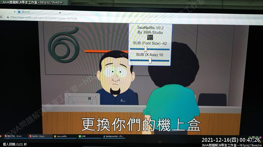 | 內容說明:2021.10.03netflix字幕加大 | 瀏覽人數: 1317 |