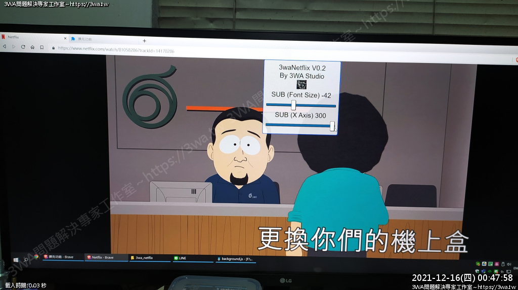 | 內容說明:2021.10.03netflix字幕加大 | 瀏覽人數: 1335 |