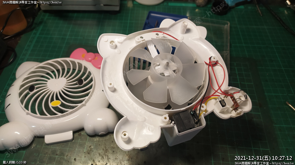 | 內容說明:2021.12.31維修HelloKitty電扇 | 瀏覽人數: 1076 |