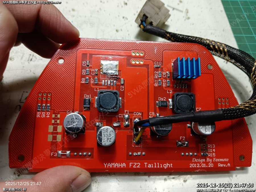 | 內容說明:2025.12.25FZ2 狐大LED尾燈維修 | 瀏覽人數: 123 |