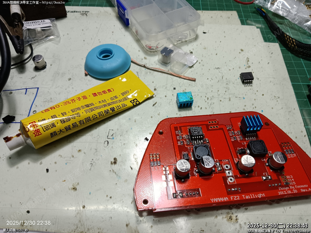 | 內容說明:2025.12.25FZ2 狐大LED尾燈維修 | 瀏覽人數: 117 |
