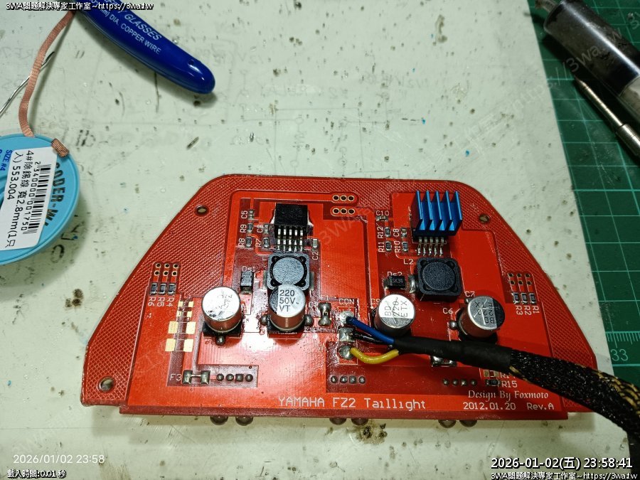 | 內容說明:2025.12.25FZ2 狐大LED尾燈維修 | 瀏覽人數: 116 |