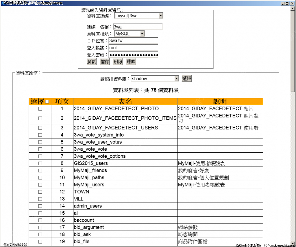 | 內容說明:DB_DUMPER | 瀏覽人數: 1466 |