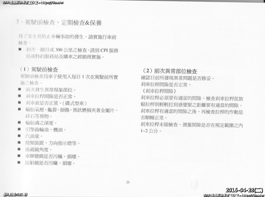 | 內容說明:SM250車主手冊 | 瀏覽人數: 1650 |
