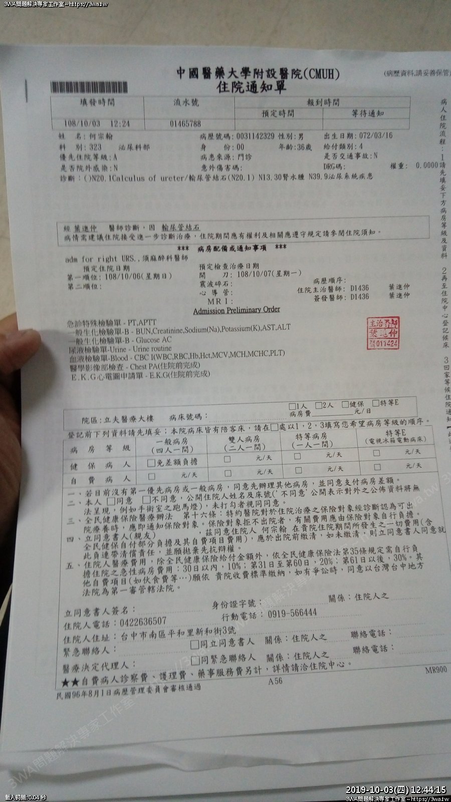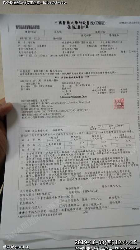 | 內容說明:2019.10.07腎結石開刀 | 瀏覽人數: 1314 |