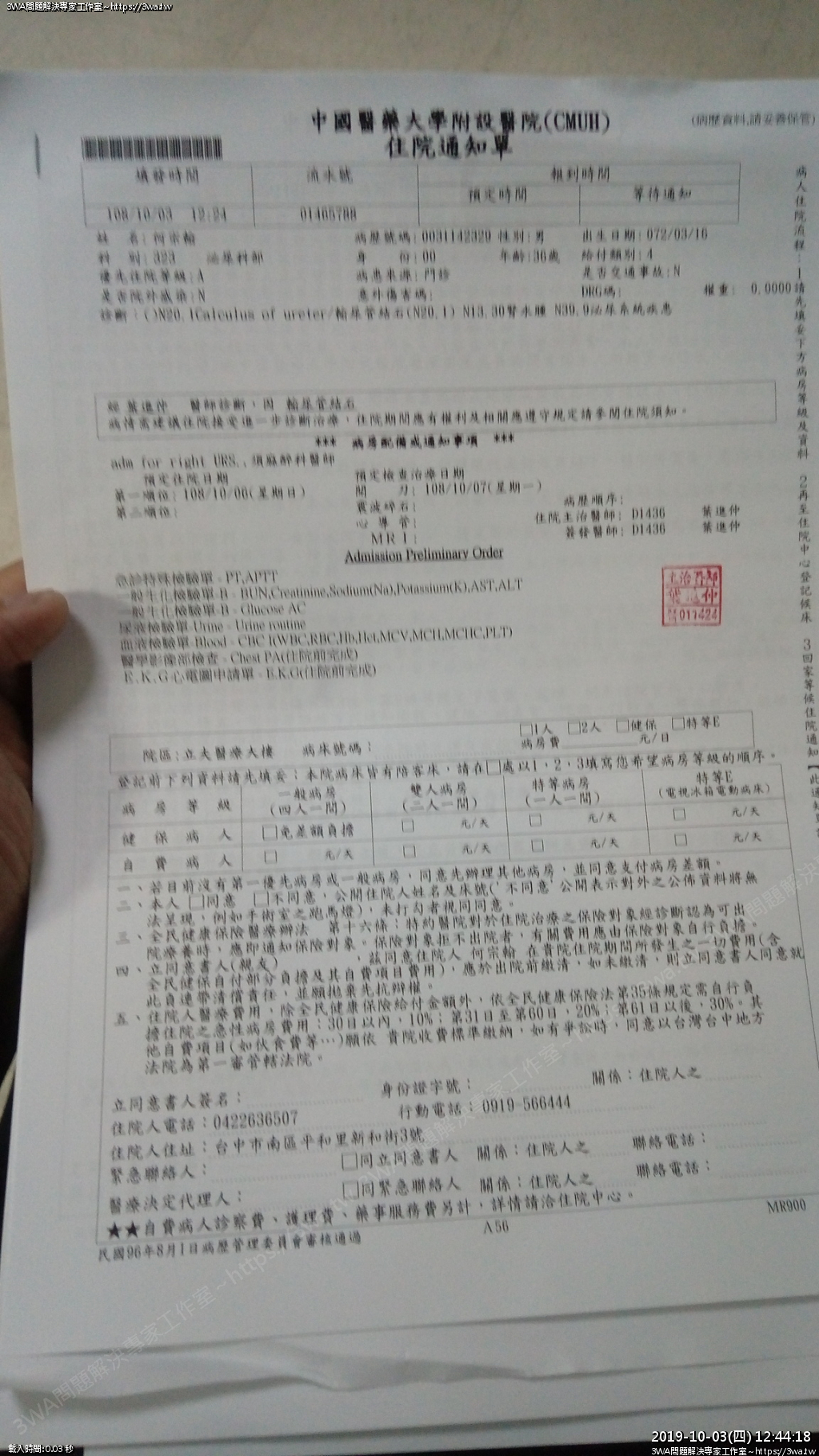 | 內容說明:2019.10.07腎結石開刀 | 瀏覽人數: 1292 |