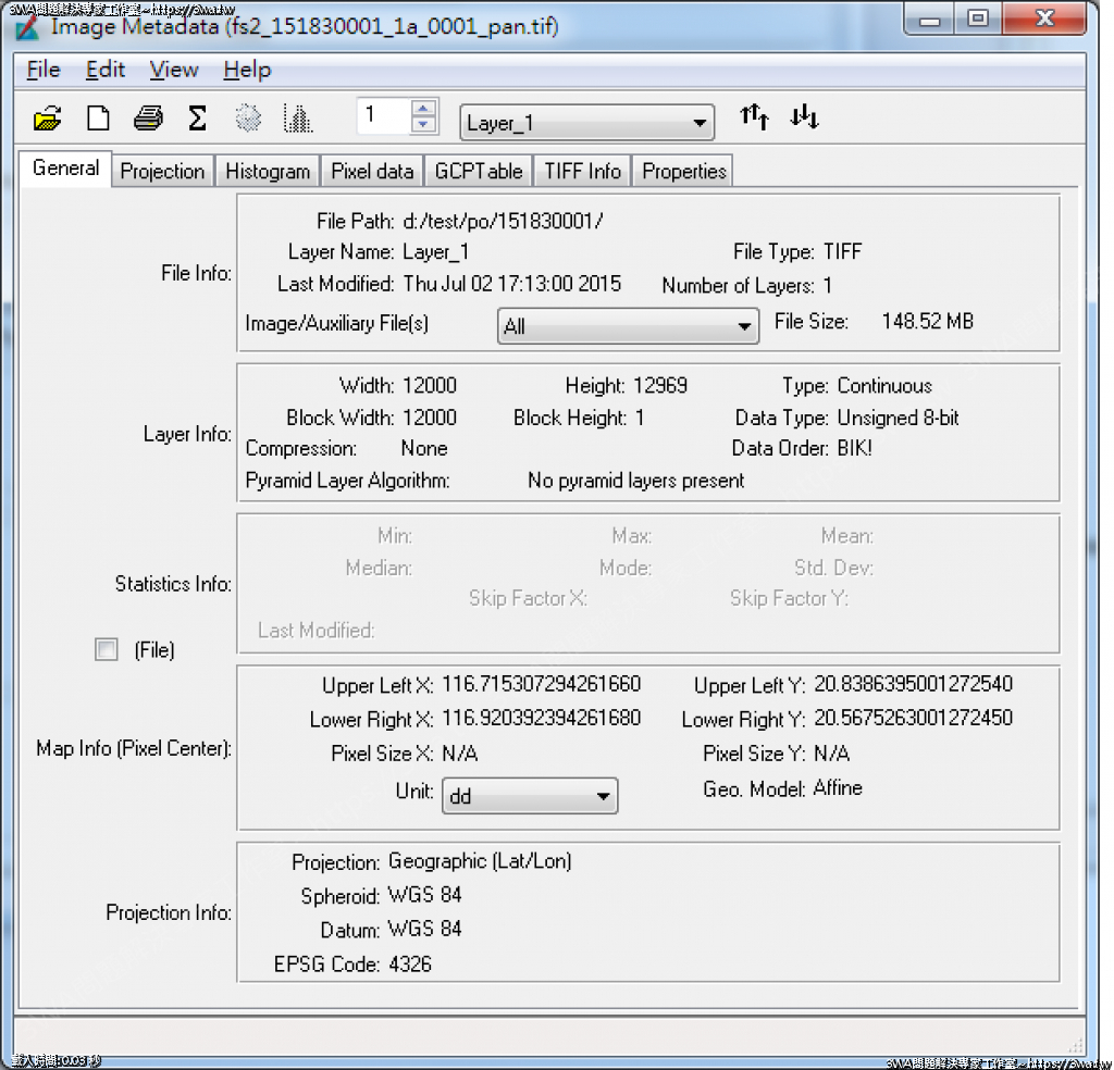| 內容說明:GeoTiff Header | 瀏覽人數: 1664 |