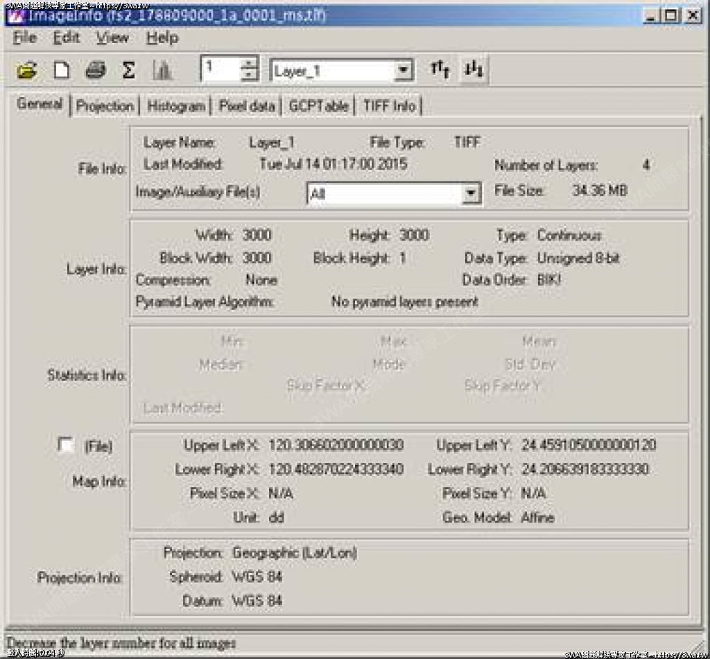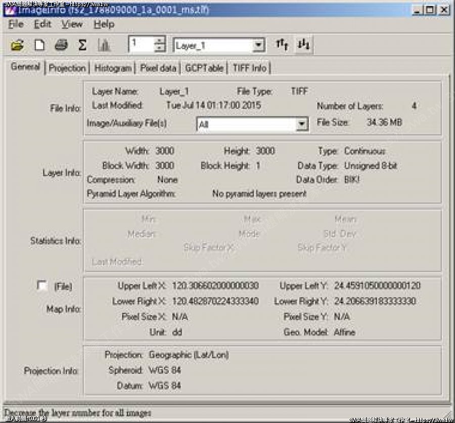 | 內容說明:GeoTiff Header | 瀏覽人數: 1666 |