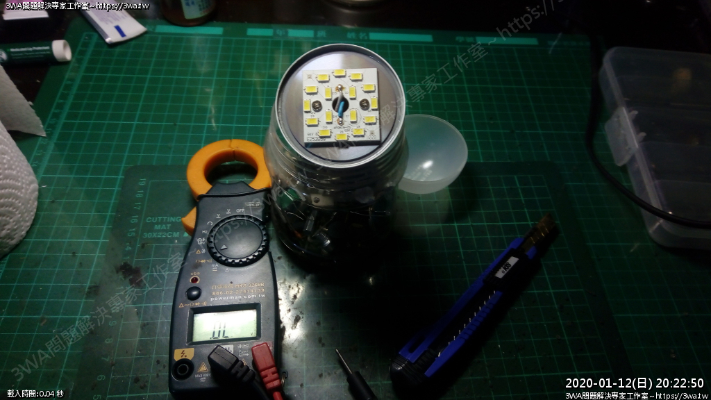 | 內容說明:2020.01.12LED燈炮維修 | 瀏覽人數: 1298 |
