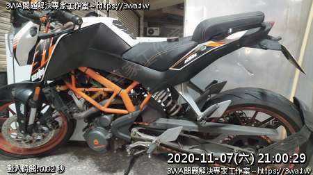 | 內容說明:2020.11.07KTM390廢側柱 | 瀏覽人數: 1380 |