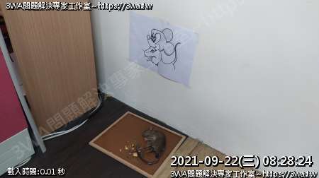 | 內容說明:2021.09.22辦公室抓到老鼠 | 瀏覽人數: 1146 |