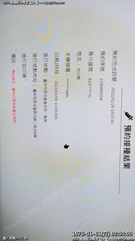 | 內容說明:2021.08.05打AZ疫苗 | 瀏覽人數: 996 |