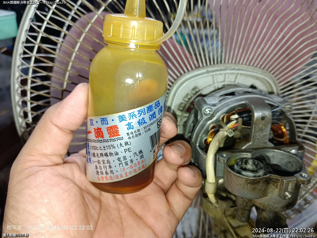 | 內容說明:2024.08.22電風扇上油 | 瀏覽人數: 615 |