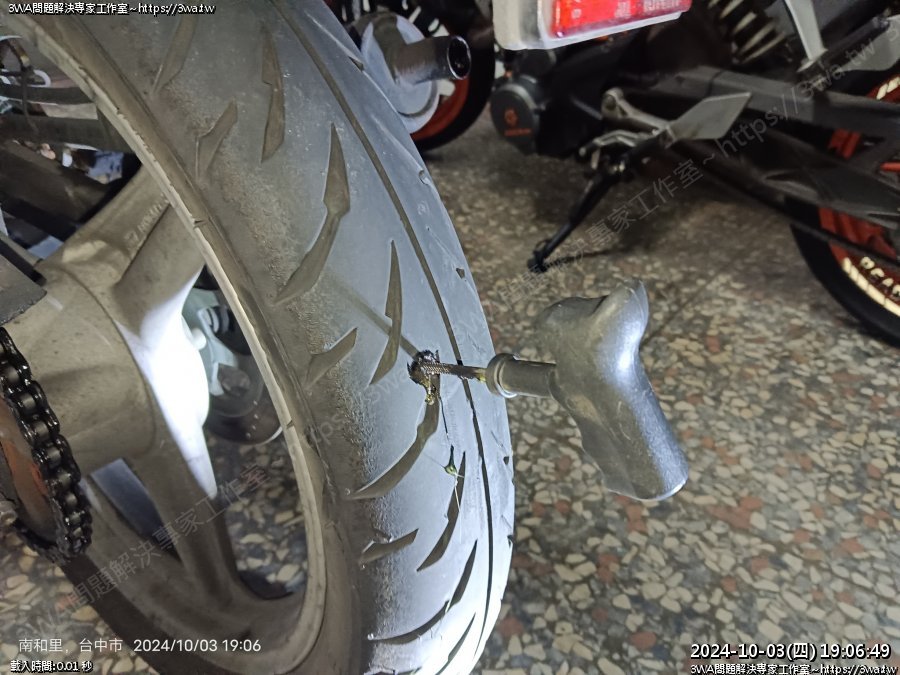 | 內容說明:2024.10.03NSR中釘補胎 | 瀏覽人數: 673 |