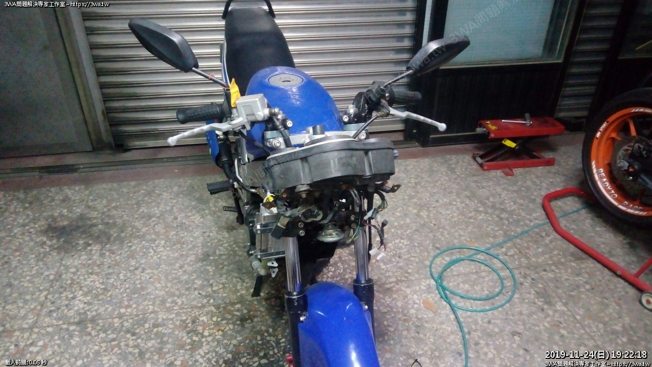 左前叉抽離,左把手的線繞到車子油箱底下了,之後拆油箱噴車架再一起處理