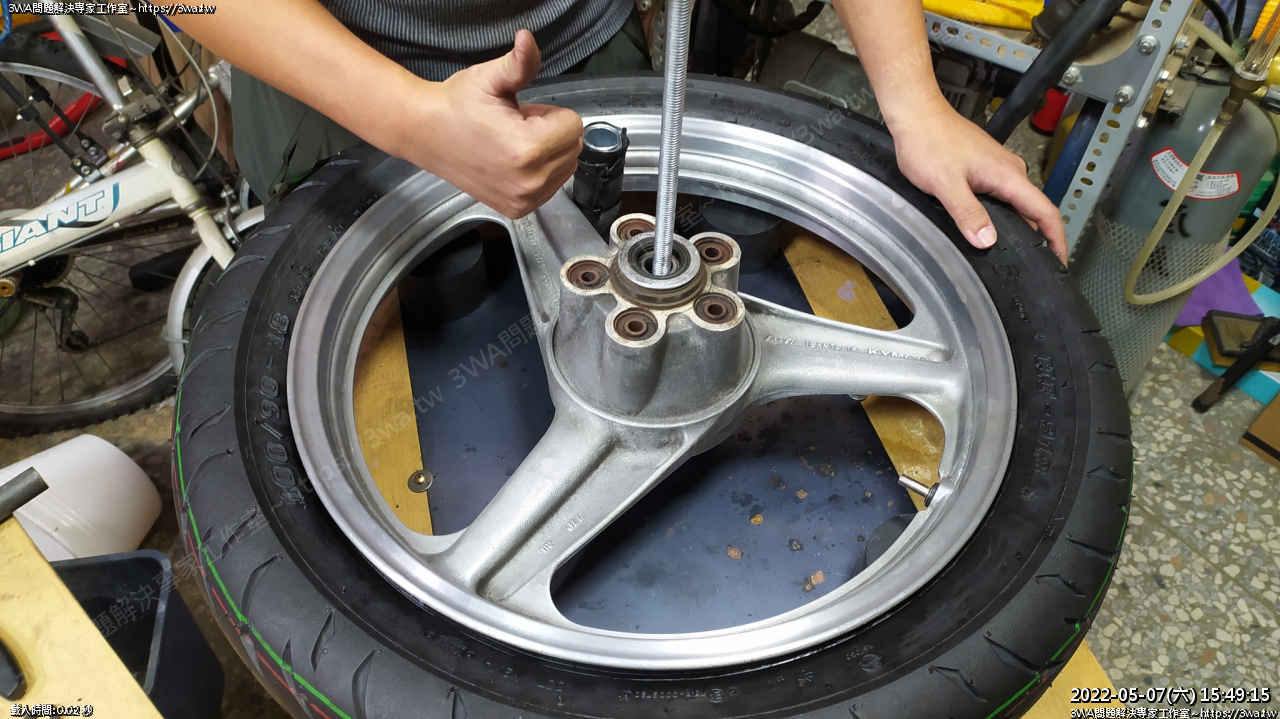 大概是這個感覺,特工跟輪框固定好,拆裝輪胎工具比較不會跳