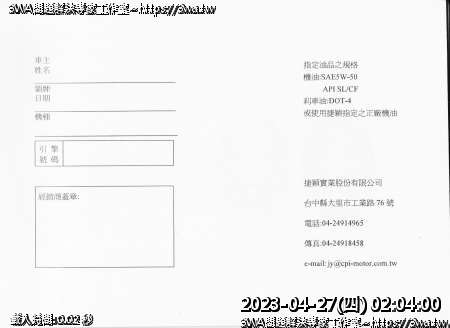 | 內容說明:SM250車主手冊 | 瀏覽人數: 1889 |