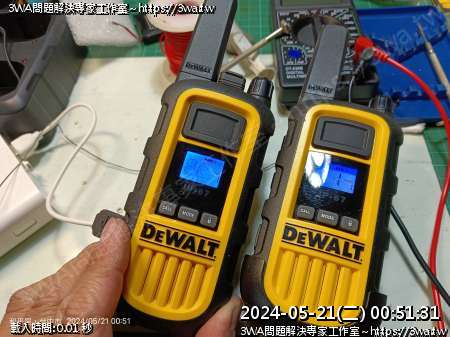 | 內容說明:2024.05.21維修Dewalt walkie talkie | 瀏覽人數: 688 |