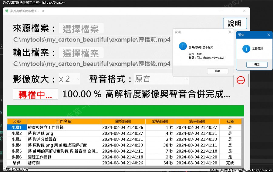 | 內容說明:2024.07.30我的影片清晰機 | 瀏覽人數: 313 |