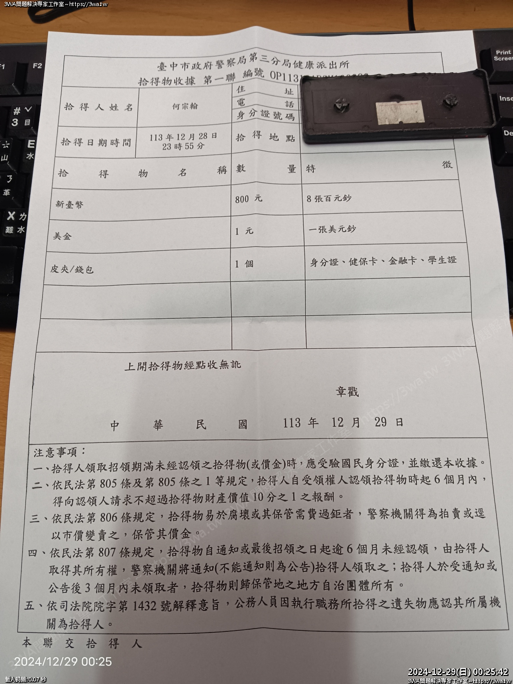 | 內容說明:撿到錢 | 瀏覽人數: 472 |